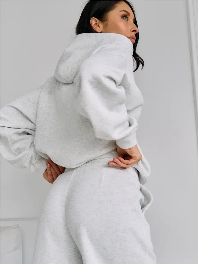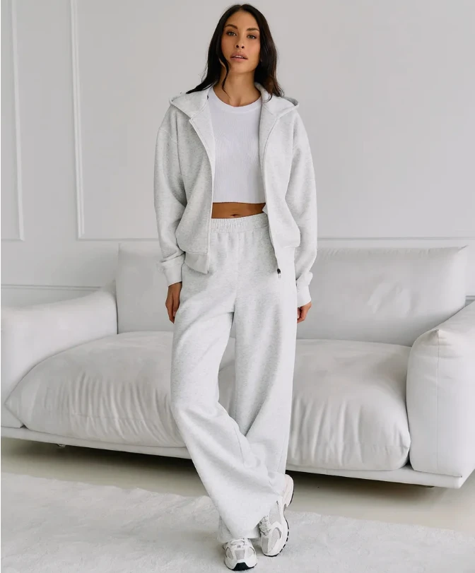 2025 New White Solid Pattern Women's Tracksuit Set Hooded Zip-Up Loungewear Ankle-Length Two-Piece for Casual Daily Use